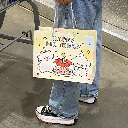 Happy Puppy Happy Birthday Gift Bag - Strawberry cake